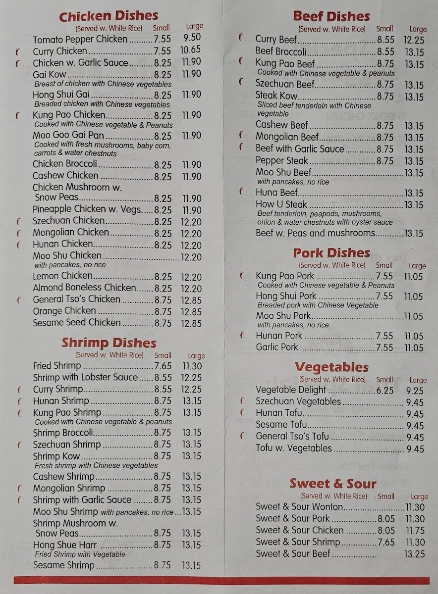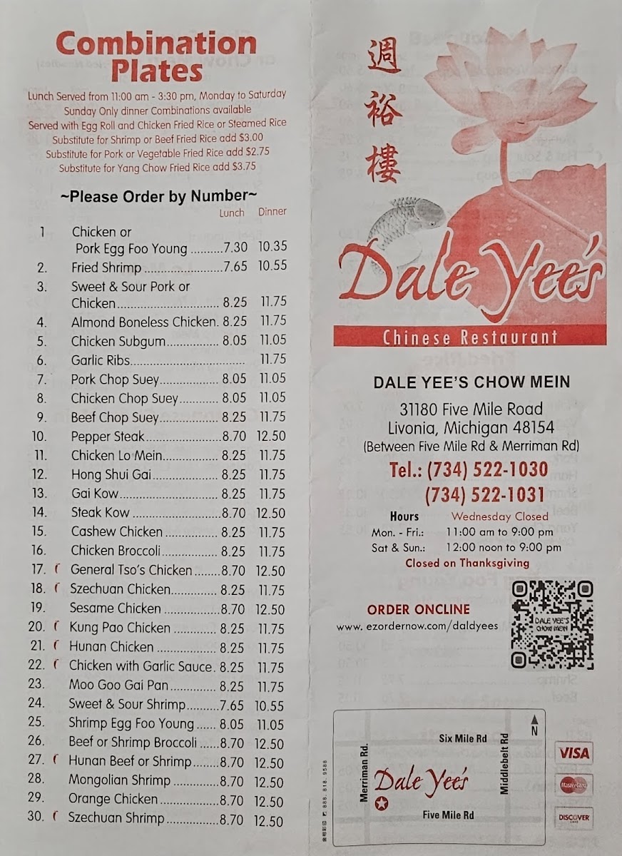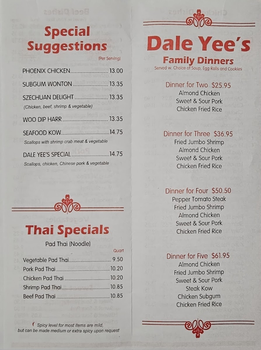 From a reviewer’s perspective, the menu at Dale Yee's Chow Mein offers a concise yet well-balanced snapshot of classic Chinese-American comfort food, focusing on familiar flavors done with simplicity and consistency. The soup section sets a comforting tone with staples like Won Ton Soup and Egg Drop Soup, both of which serve as reliable starters that highlight warmth and tradition. Moving into the main dishes, the Chow Mein selection keeps things straightforward with Meatless Vegetable Chow Mein and Chicken Chow Mein, appealing equally to vegetarians and meat lovers who want a satisfying, noodle-based entrée. The Chop Suey options mirror this balance, offering Meatless Vegetable Chop Suey and Chicken Chop Suey, dishes that emphasize fresh vegetables paired with light sauces for an easy, home-style feel. For guests craving richer, heartier noodles, the Lo Mein section stands out with Shrimp Lo Mein and Chicken Lo Mein, delivering classic stir-fried noodles that feel filling without being overwhelming. Finally, the Fried Rice choices-Vegetable Fried Rice and Ham Fried Rice-round out the menu as dependable sides or standalone meals, reinforcing the restaurant’s focus on familiar, crowd-pleasing combinations. Overall, the menu at Dale Yee’s Chow Mein may not be expansive, but it is thoughtfully curated, sticking closely to proven favorites and offering a clear sense of what the restaurant does best: simple, traditional dishes that prioritize comfort, approachability, and consistency over unnecessary complexity.